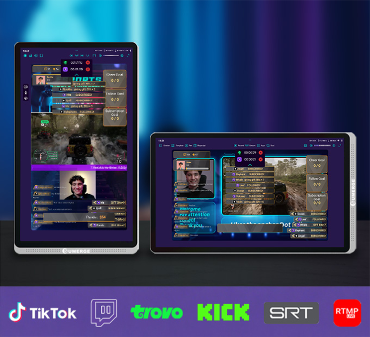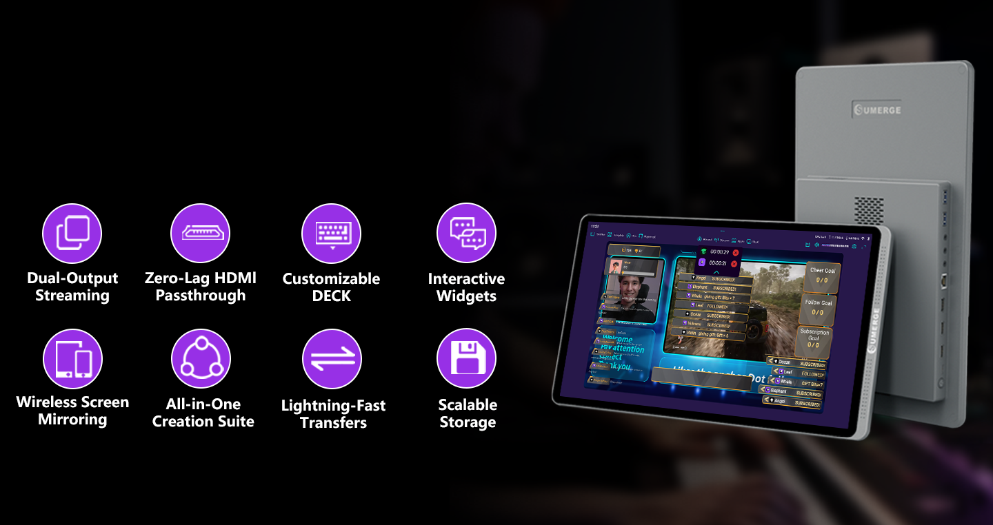 The Sumerge DSA is an all-in-one multifunctional streaming device that provides creators with an efficient solution for live streaming and recording. Supporting 1080p 60HZ HD video, it enables simultaneous broadcasts to 3+ platforms (including Twitch, TikTok, Kick, Trovo) with independent landscape/portrait outputs.Integrating encoding, recording, and multi-view monitoring, this device completes entire workflows without extra equipment, enhancing content exposure and productivity. It supports mobile app activation and professional protocols like RTMP/SRT, delivering stable low-latency transmission for live shows and remote collaboration through simplified setup.